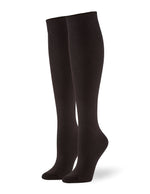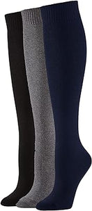 HUE's flat-knit knee socks feature soft breathable cotton and nylon blends. The cuff sports a ribbed comfort band, providing a stay-up fit ideal for everyday wear. Smooth toe seams for added comfort in your footwear. Packed in an assortment of 3 pairs: black, white, and grey heather.
