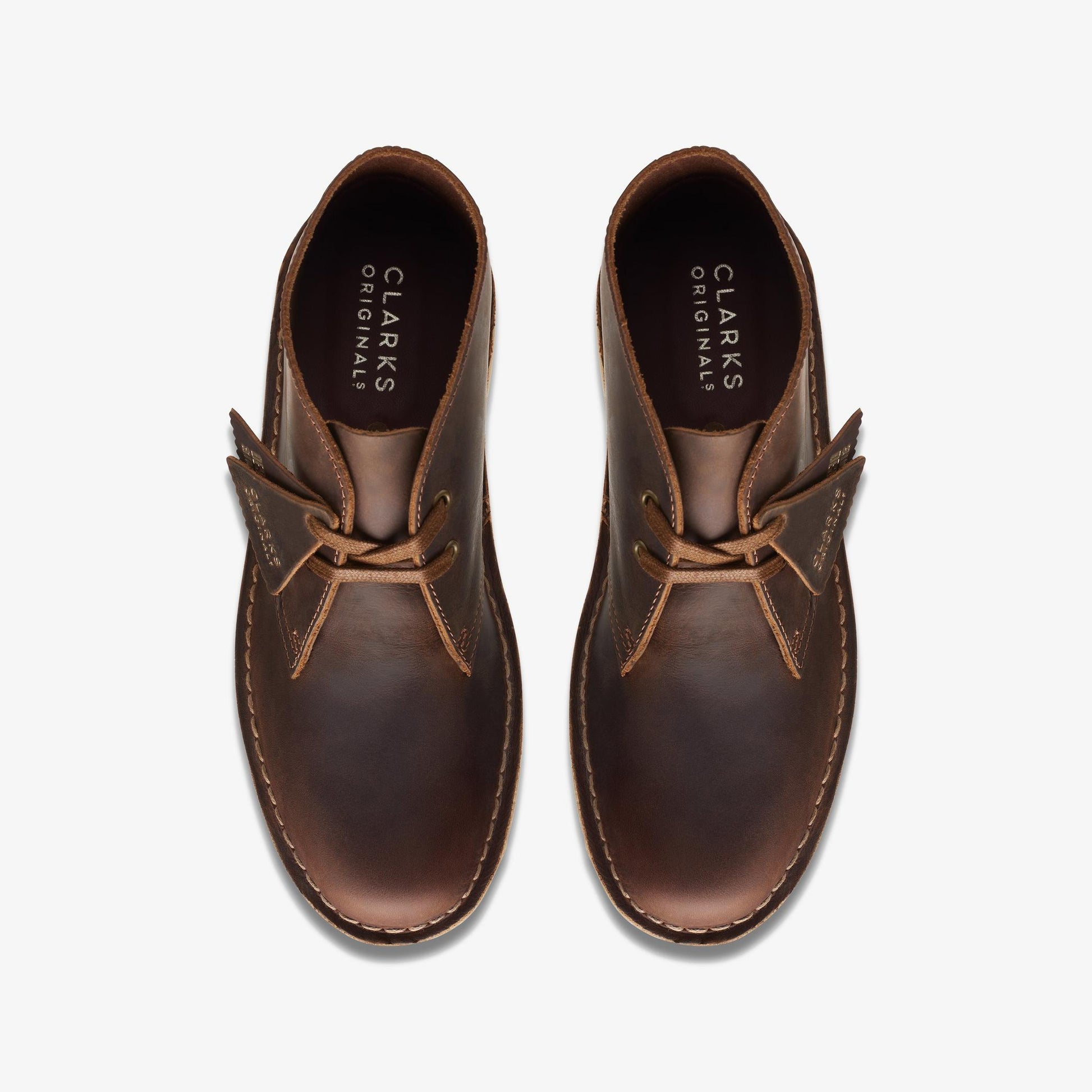 The Desert Boot is a simple, classic boot, and its structure reflects that fact. The leather footbed is flat and firm but molds to your feet with wear. Beeswax leather makes this boot durable, supple, and less prone to water damage. The leather uppers may feel a little stiff at first but wear and soften nicely over time. The crepe outsole is light and flexible, absorbing impact with every step. Your toes should not be touching the front of the shoe. Your heel should not lift out when you walk.