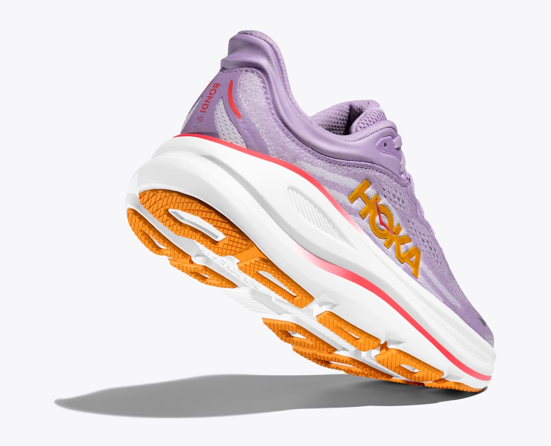Hoka's ultra-cushioned shoe just got softer! In the new update, Bondi 9 boasts softer, lighter foams and a more accommodating knit upper. Equipped with supercritical foam in the midsole, this shoe will last and support you longer than ever before! The active foot frame helps to maintain that pillowy soft feel by providing a soft and balanced ride from heel strike to forefoot transition.