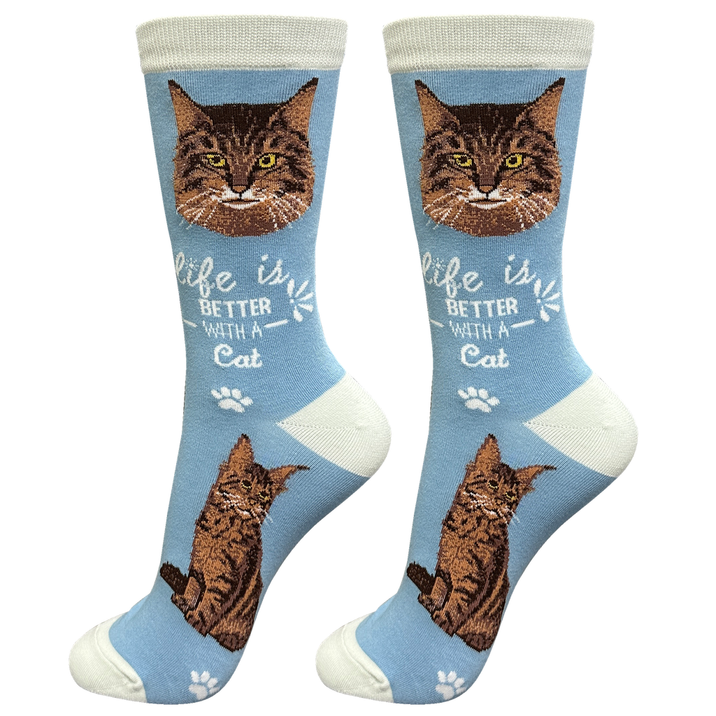 Maine Coon, the gentle giant of domesticated cats. So fluffy! Part of the proceeds of these socks support animal shelters to find new homes for pets in need!
