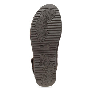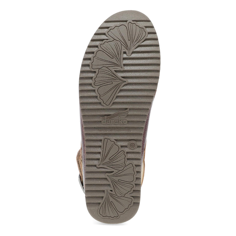 - Adjustable strap across heel with hook-and-loop closure and faux buckle