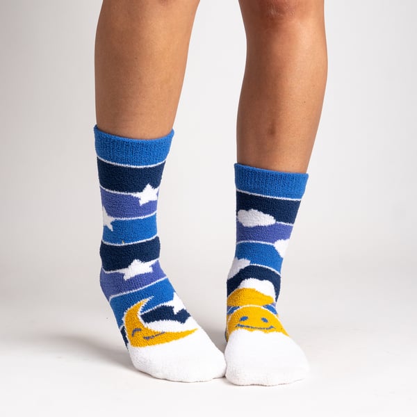 The sun and the moon are a perfect pair, just like these socks! These cozy slipper socks with non-slip grips are sure to keep your feet happy and a smile on your face.