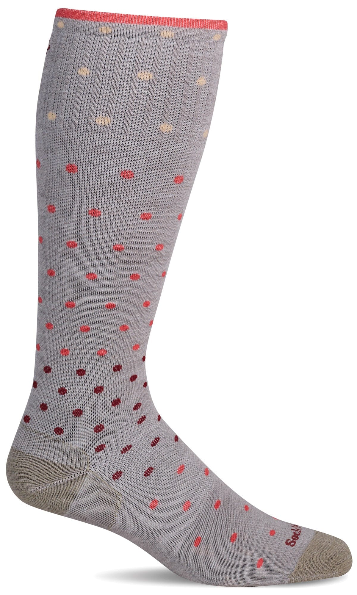 These knee high socks feature a medium graduated compression. They aid in recovery from long bouts of standing or sitting, and keep the circulation in your legs in check, and help reduce swelling and fatigue.